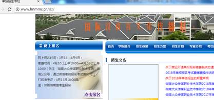 1、登录www.hnmmc.cn/dz,进入湖南大众传媒职业技术学院单招网