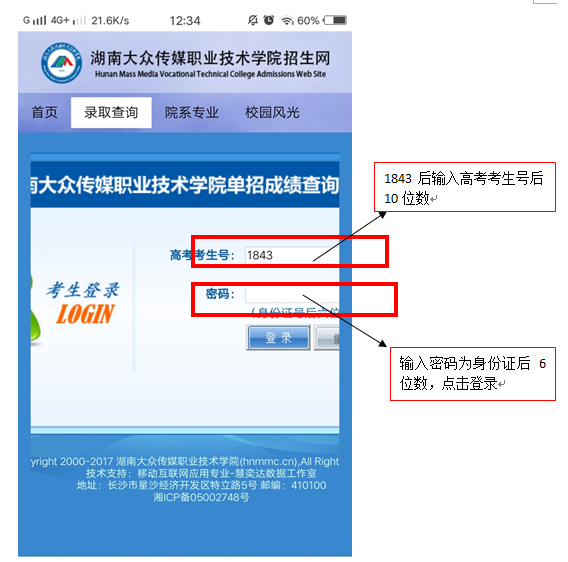 1.登录www.hnmmc.cn/dz,进入湖南大众传媒职业技术学院单招网