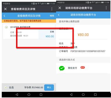 微信缴费时间:2018年4月21日00:00—4月22日24:00