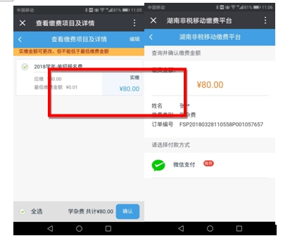 微信缴费时间:2019年4月20日00:00—4月21日24:00