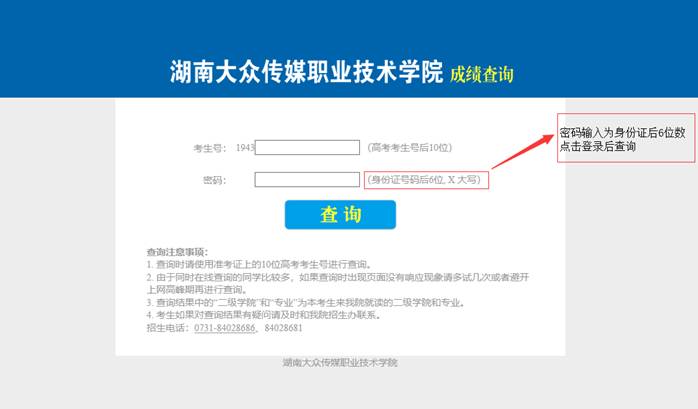 3.进入成绩查询页面,输入高考考生号后10位,密码输入身份证号后6位,点击“登录”