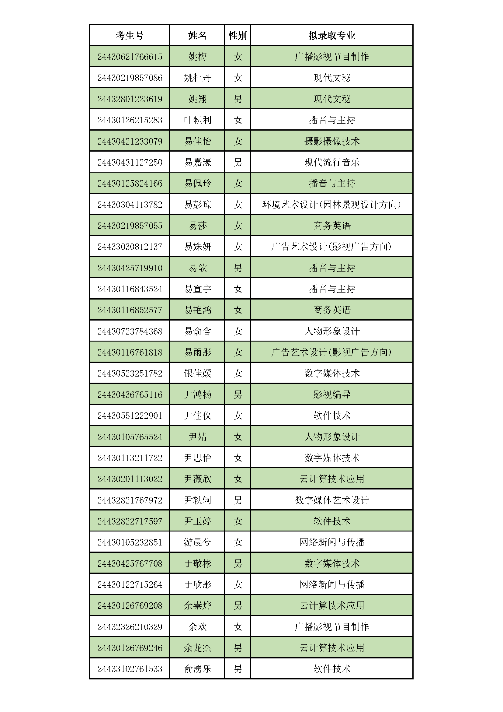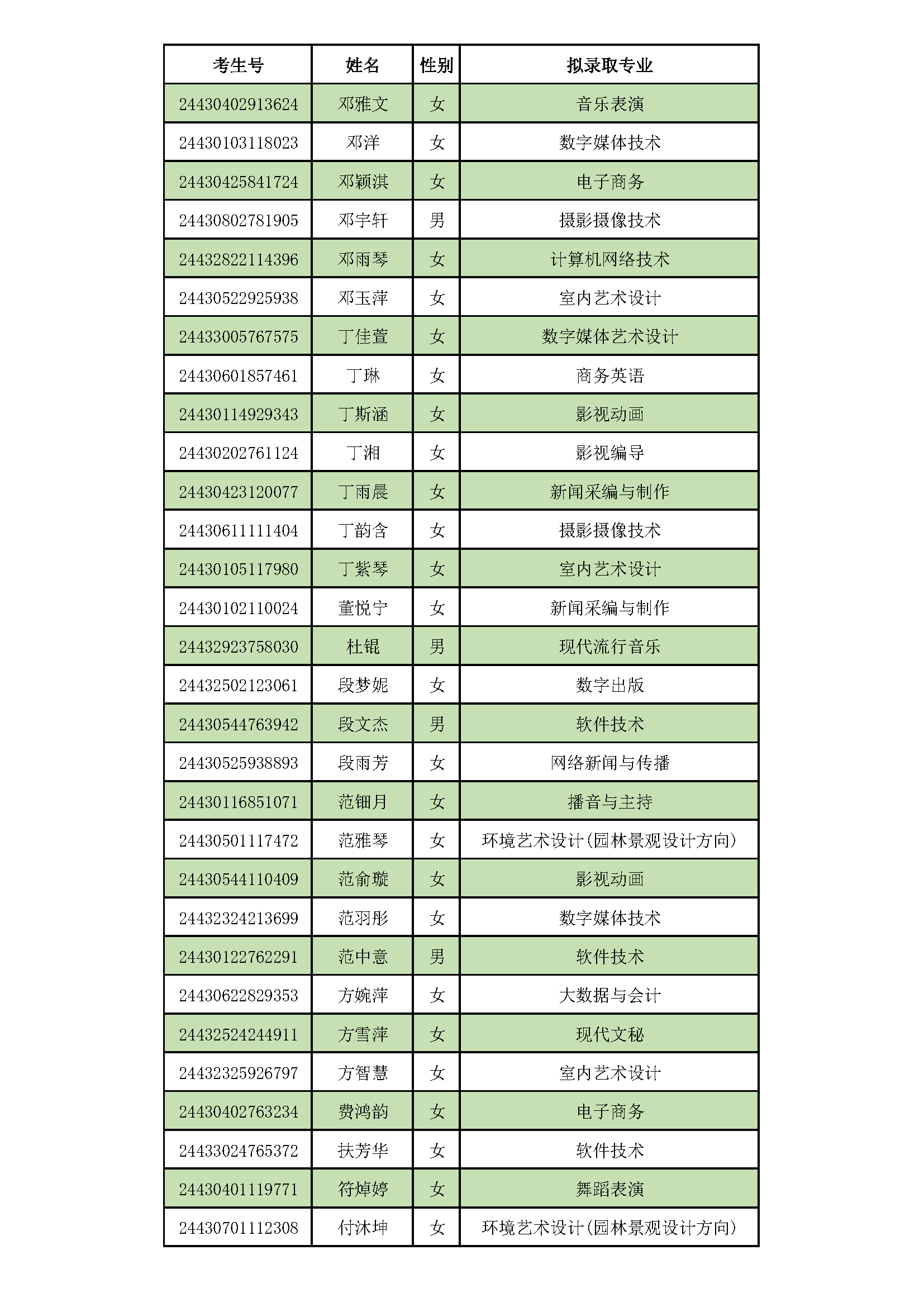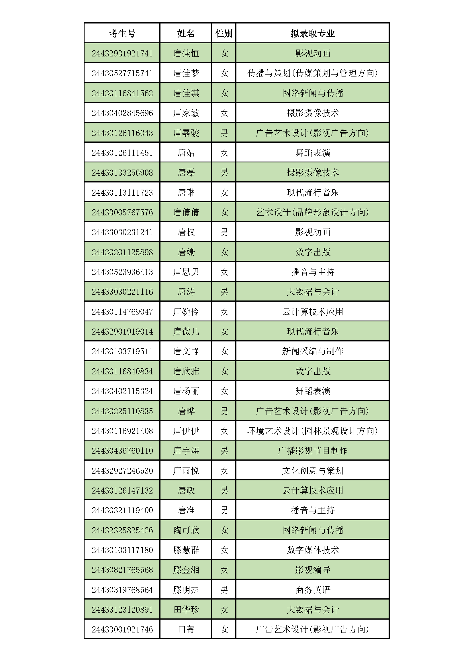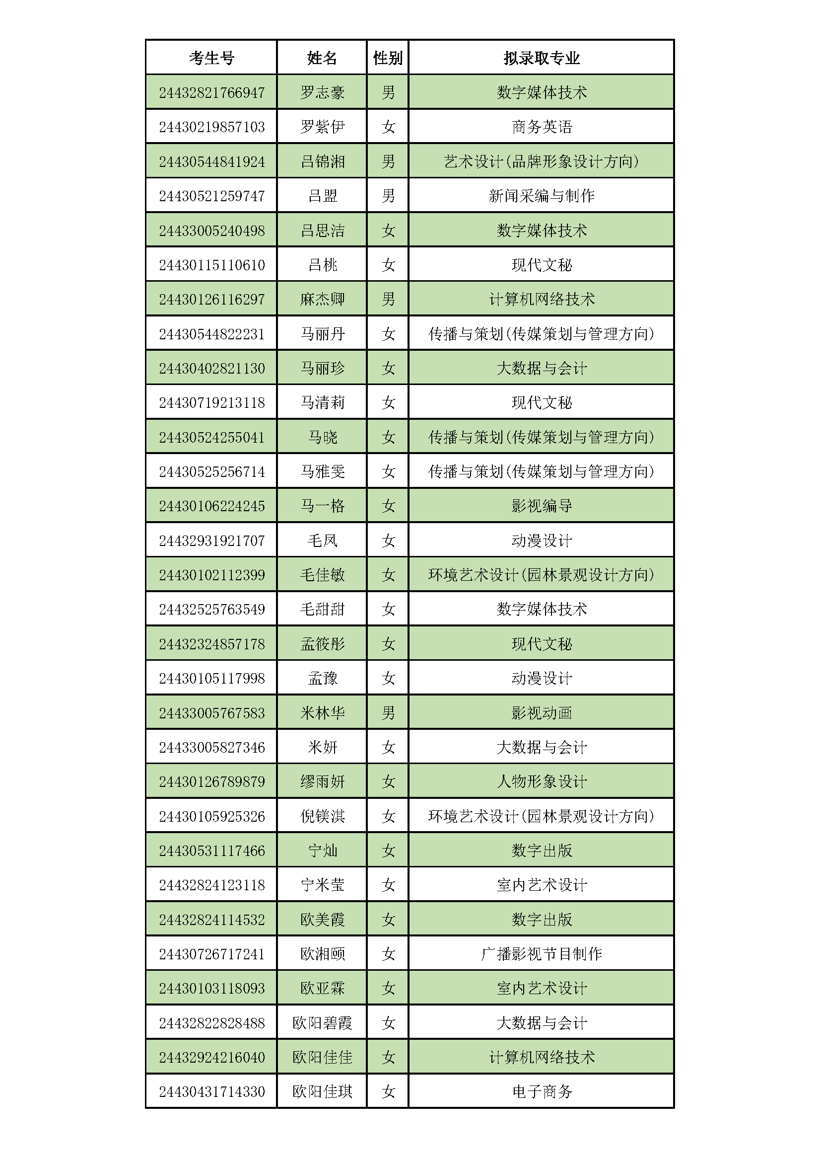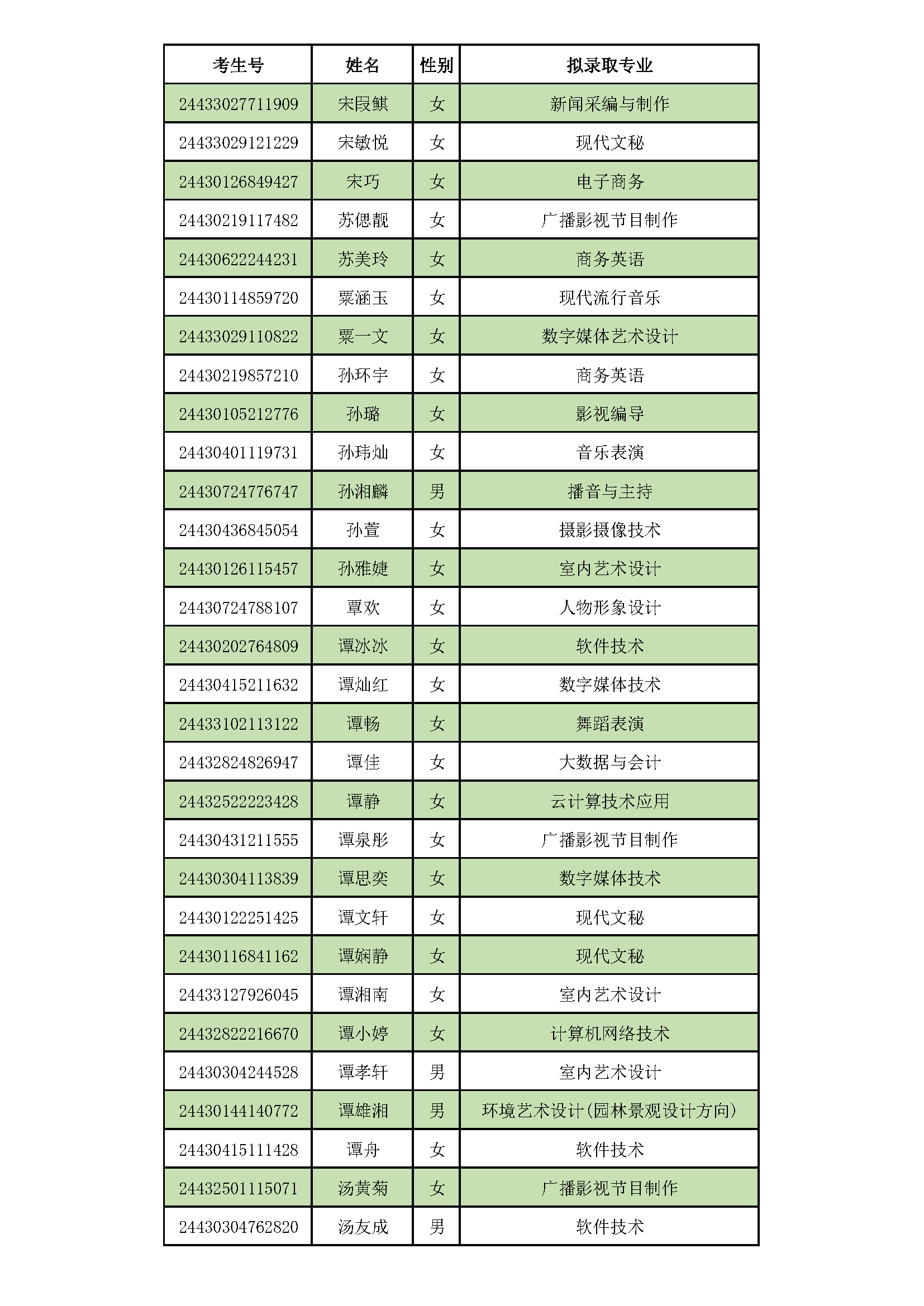 根据湖南省教育厅、湖南省教育考试院有关文件要求和《湖南大众传媒职业技术学院2024年单招章程》的相关规定,我校2024年单招第一志愿考试拟录取考生名单已按要求上报湖南省教育考试院,经审核通过,现予以公示。公示期:2024年3月26日-4月1日。