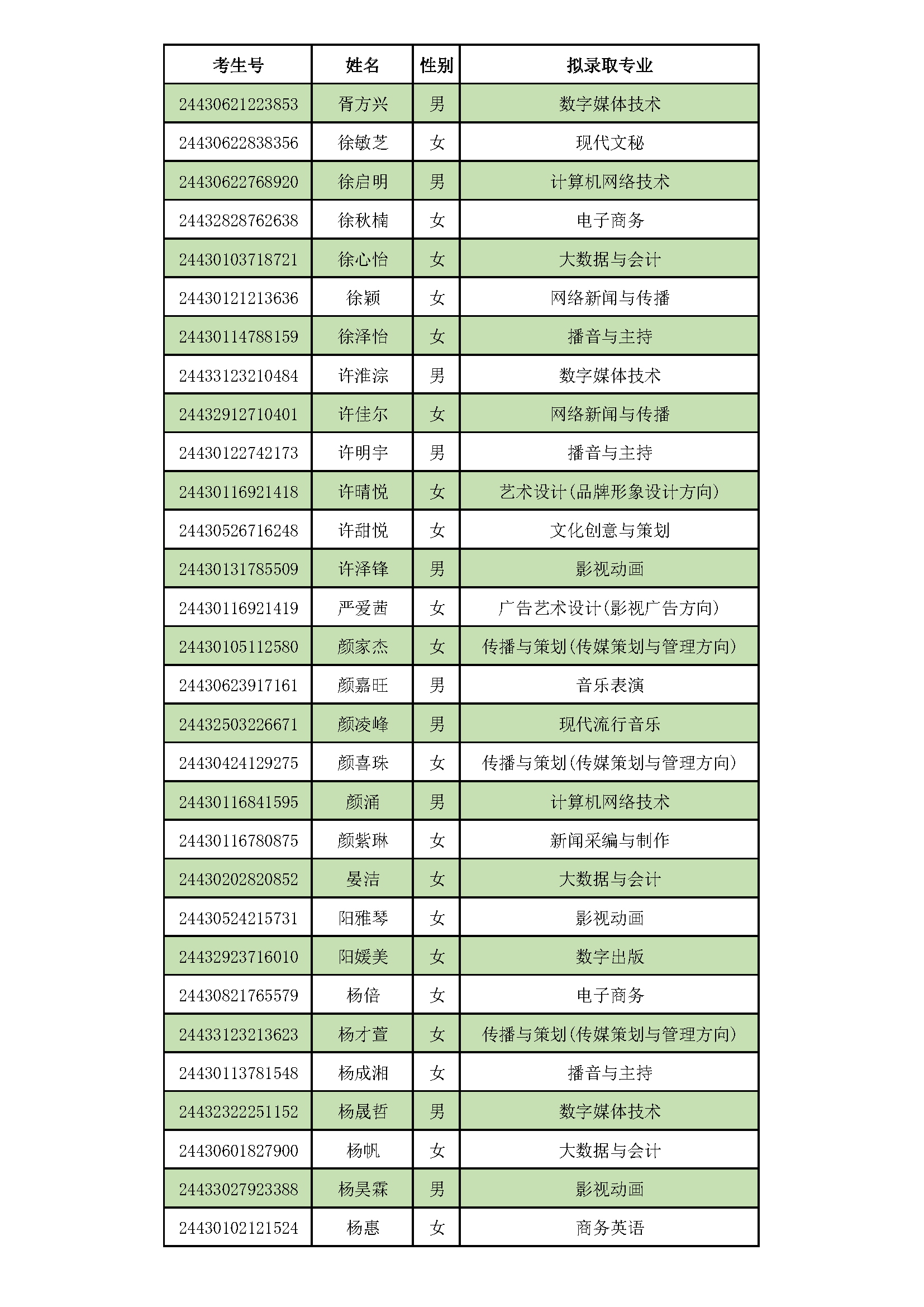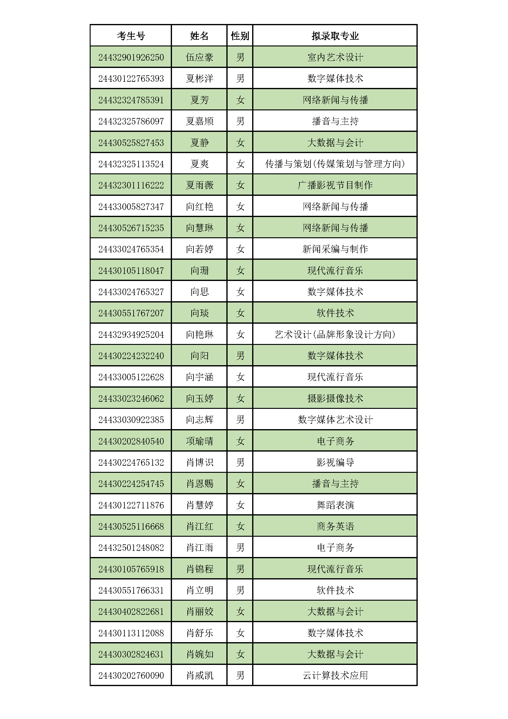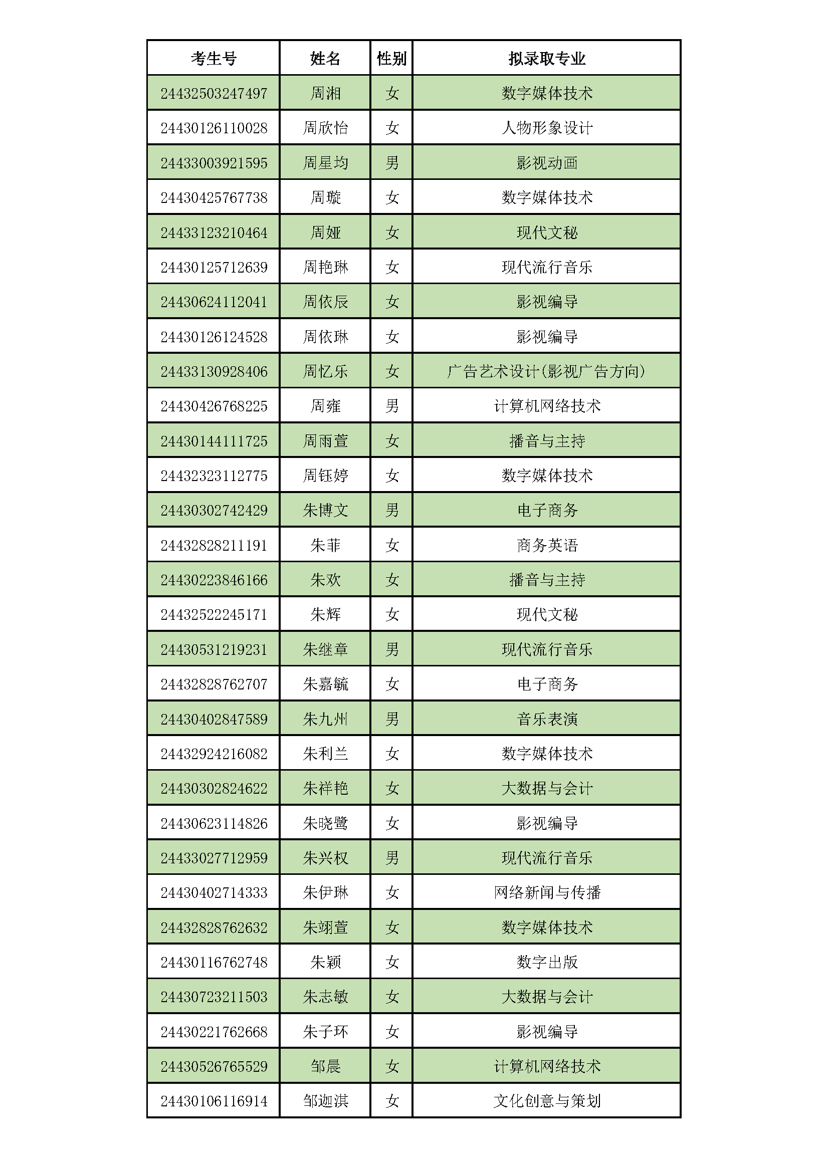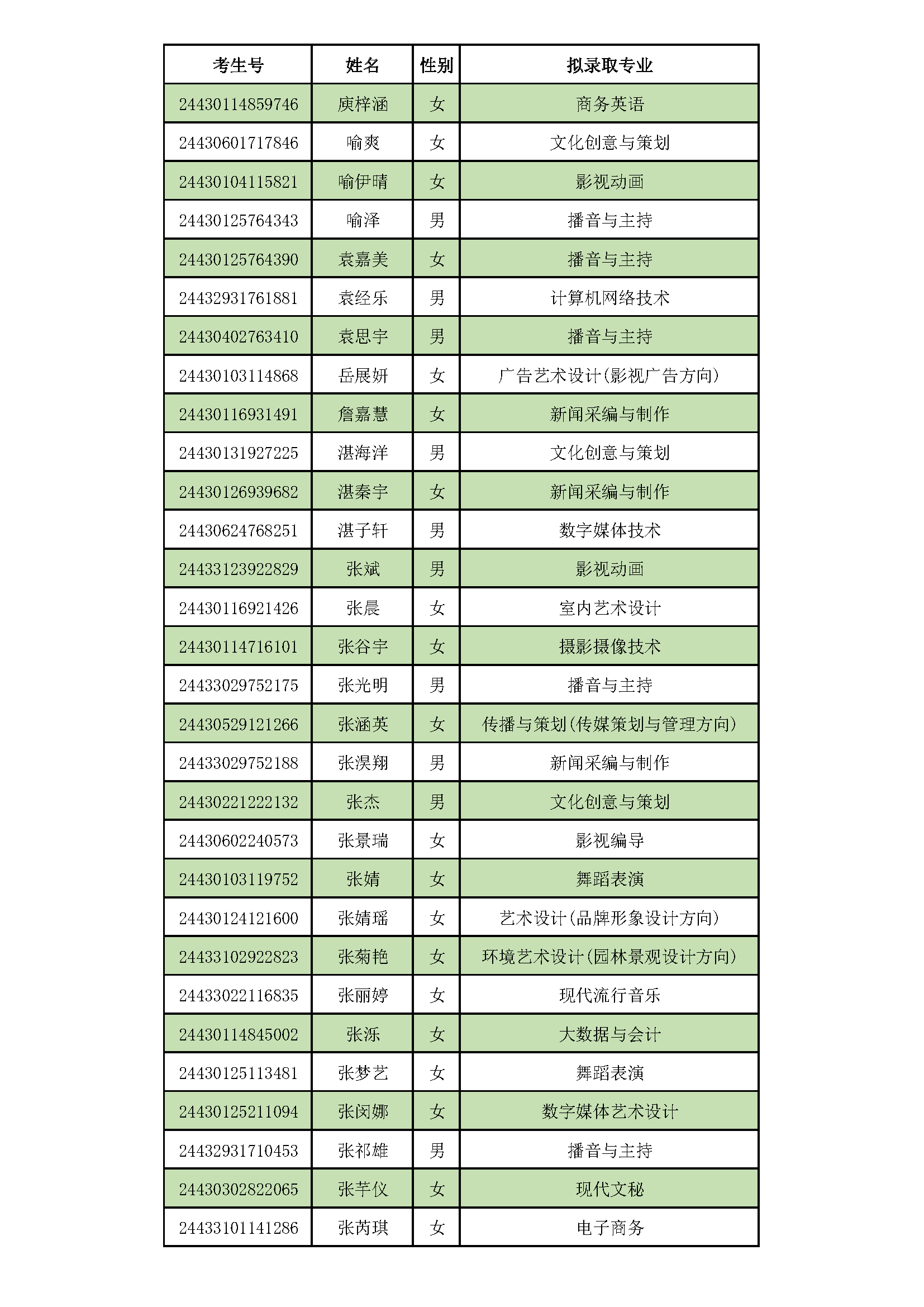 根据湖南省教育厅、湖南省教育考试院有关文件要求和《湖南大众传媒职业技术学院2024年单招章程》的相关规定,我校2024年单招第一志愿考试拟录取考生名单已按要求上报湖南省教育考试院,经审核通过,现予以公示。公示期:2024年3月26日-4月1日。