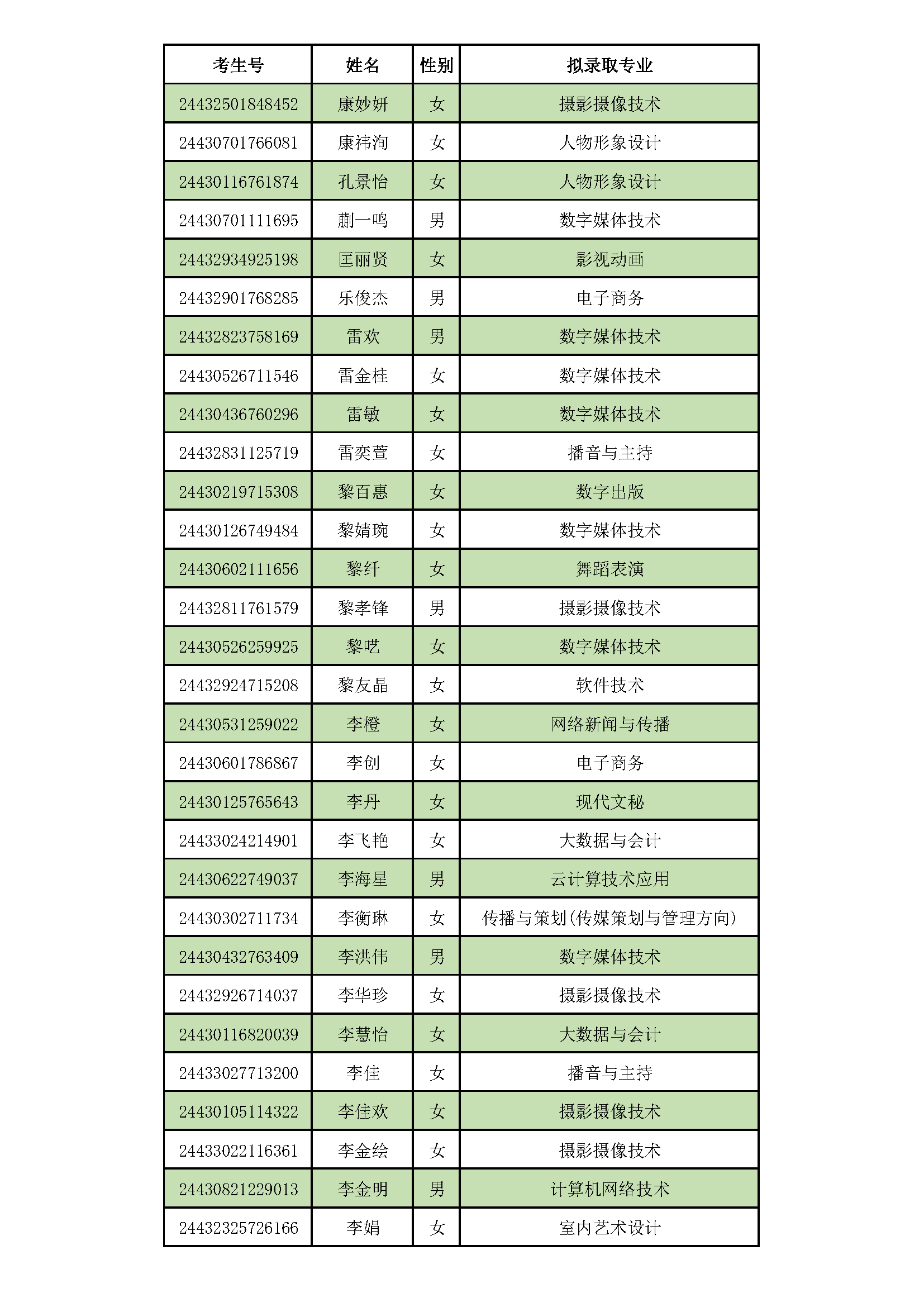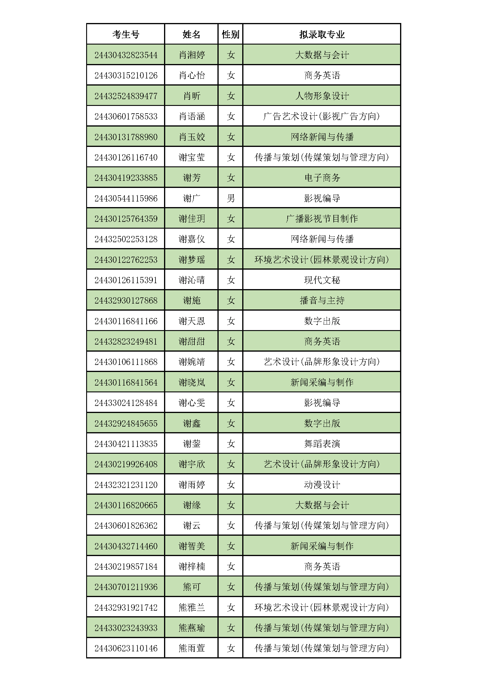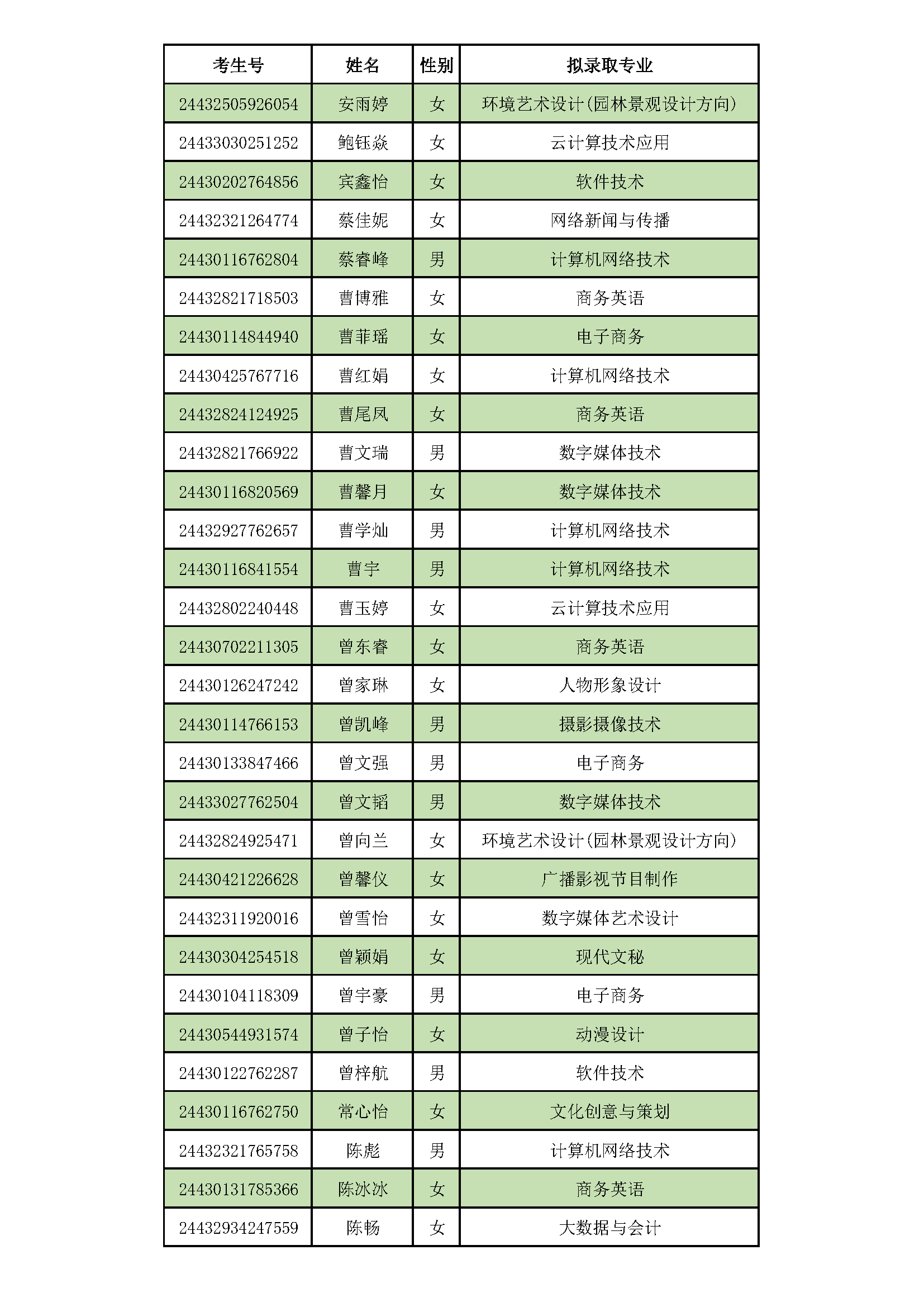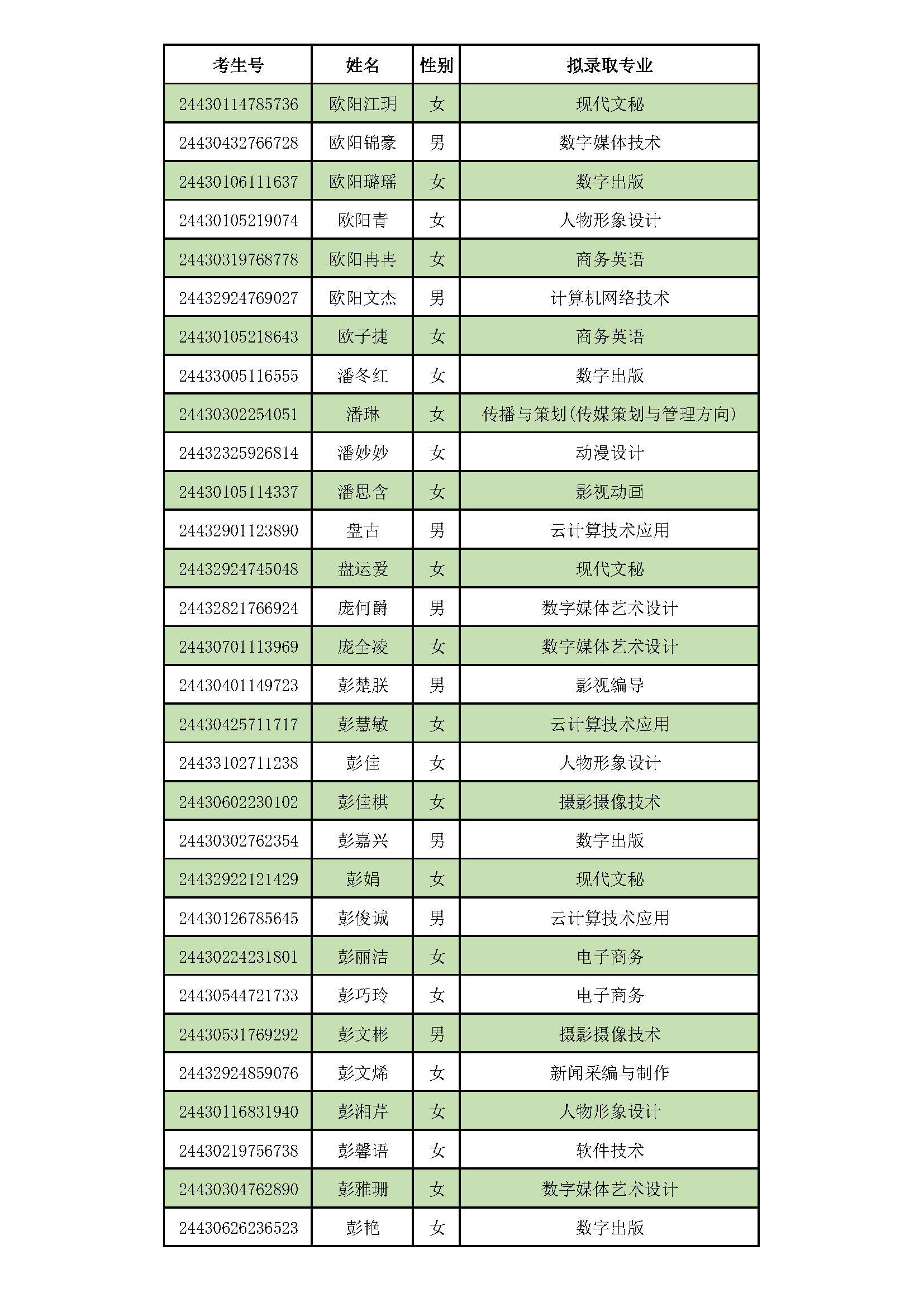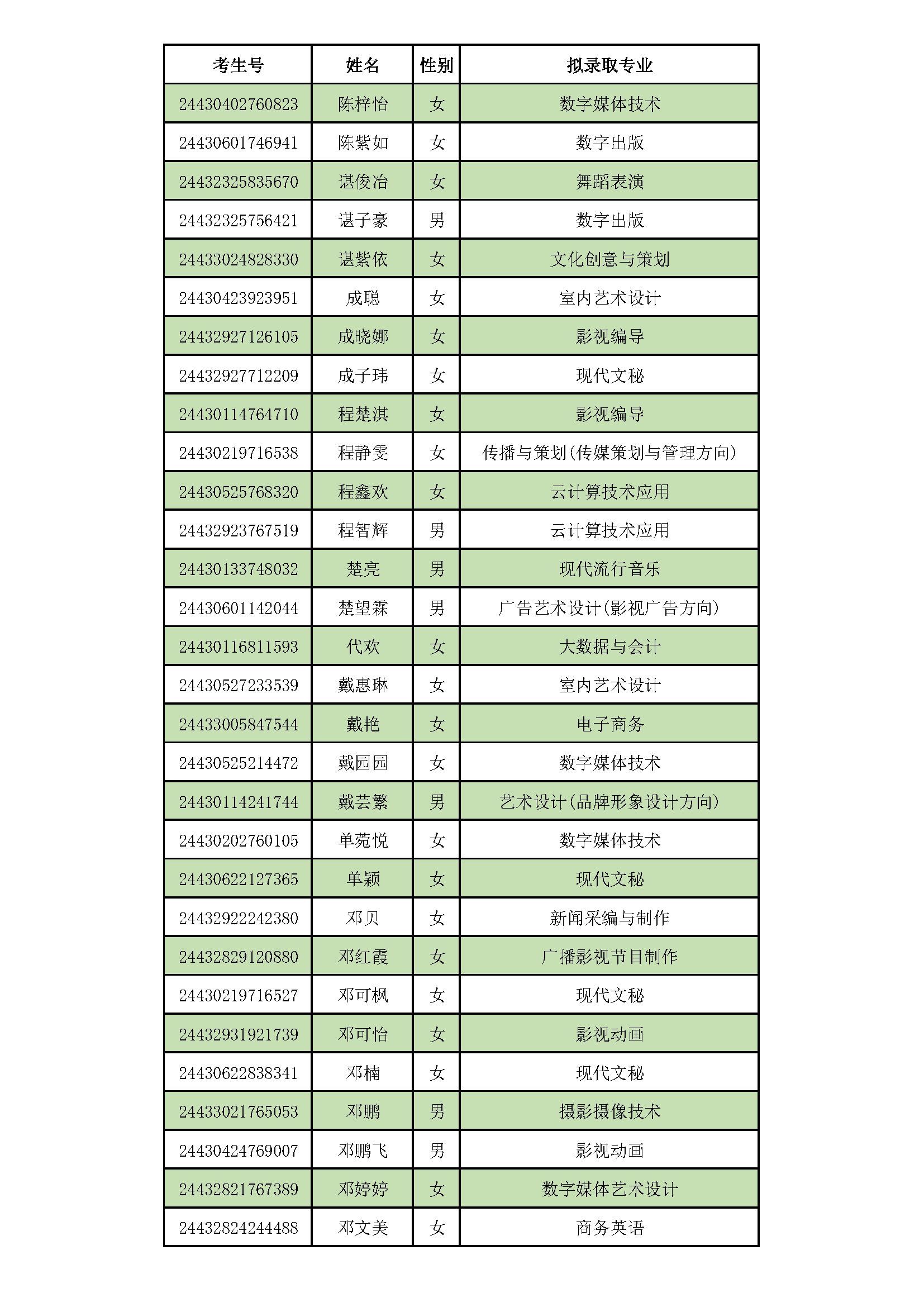 根据湖南省教育厅、湖南省教育考试院有关文件要求和《湖南大众传媒职业技术学院2024年单招章程》的相关规定,我校2024年单招第一志愿考试拟录取考生名单已按要求上报湖南省教育考试院,经审核通过,现予以公示。公示期:2024年3月26日-4月1日。