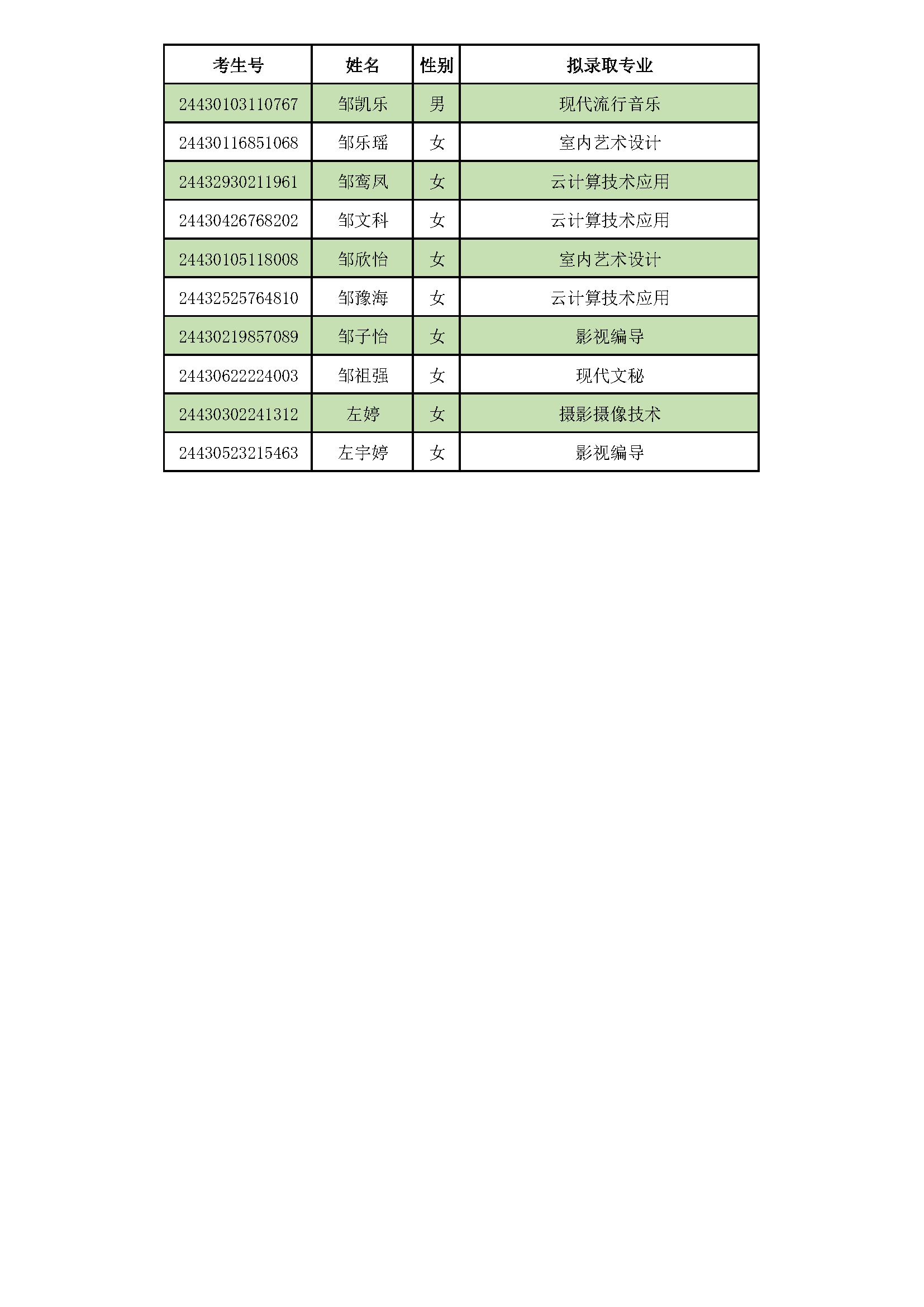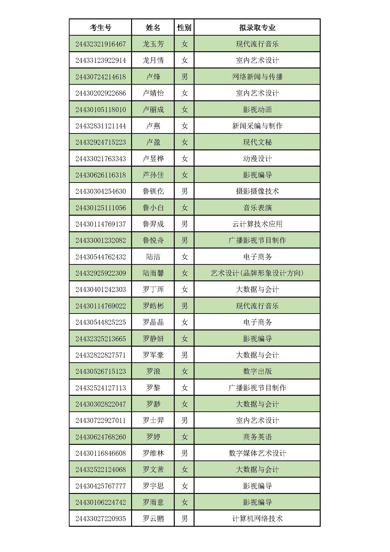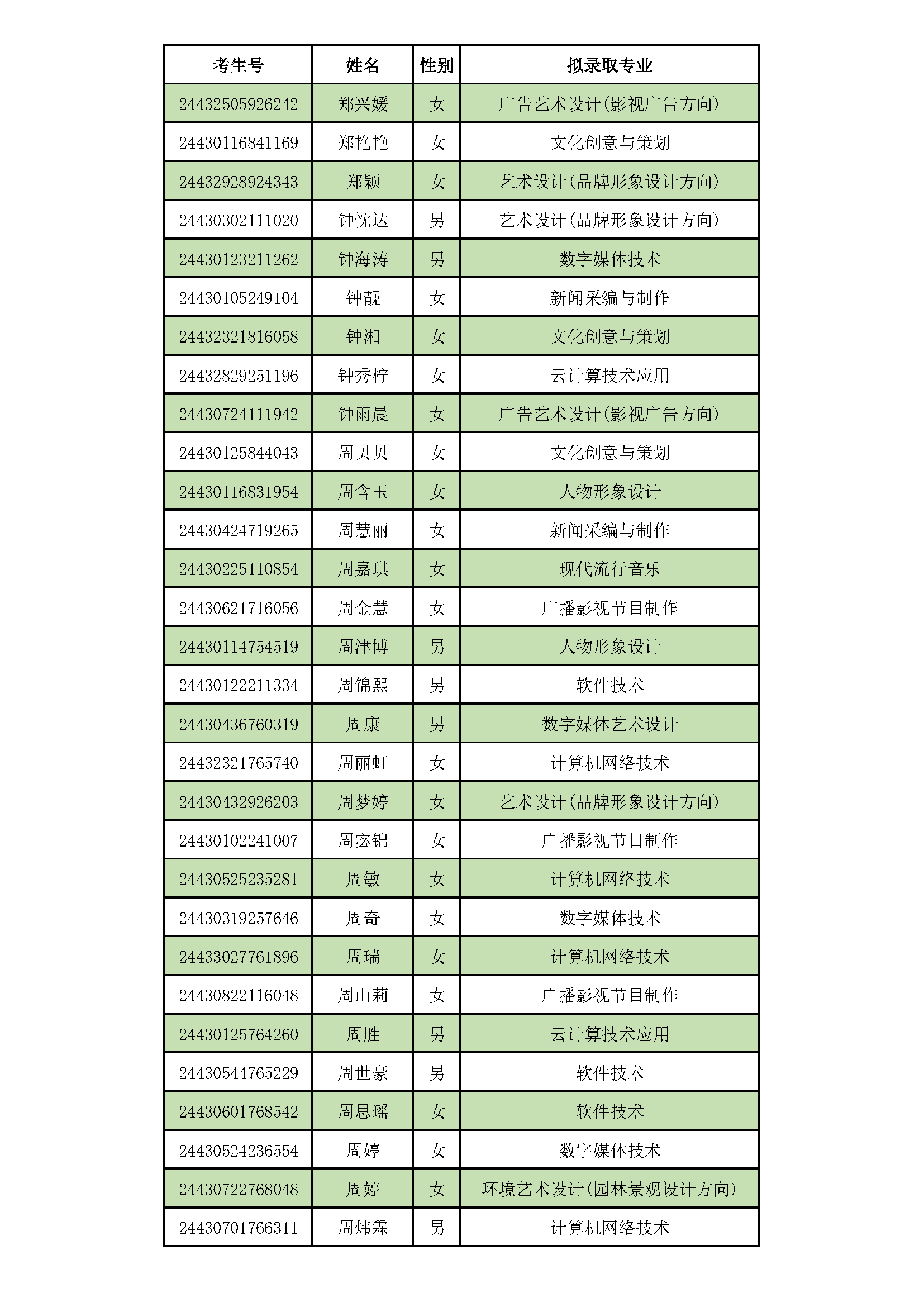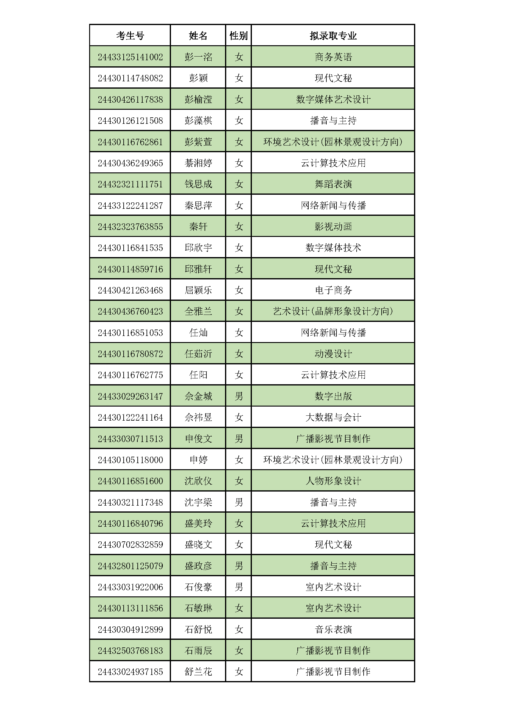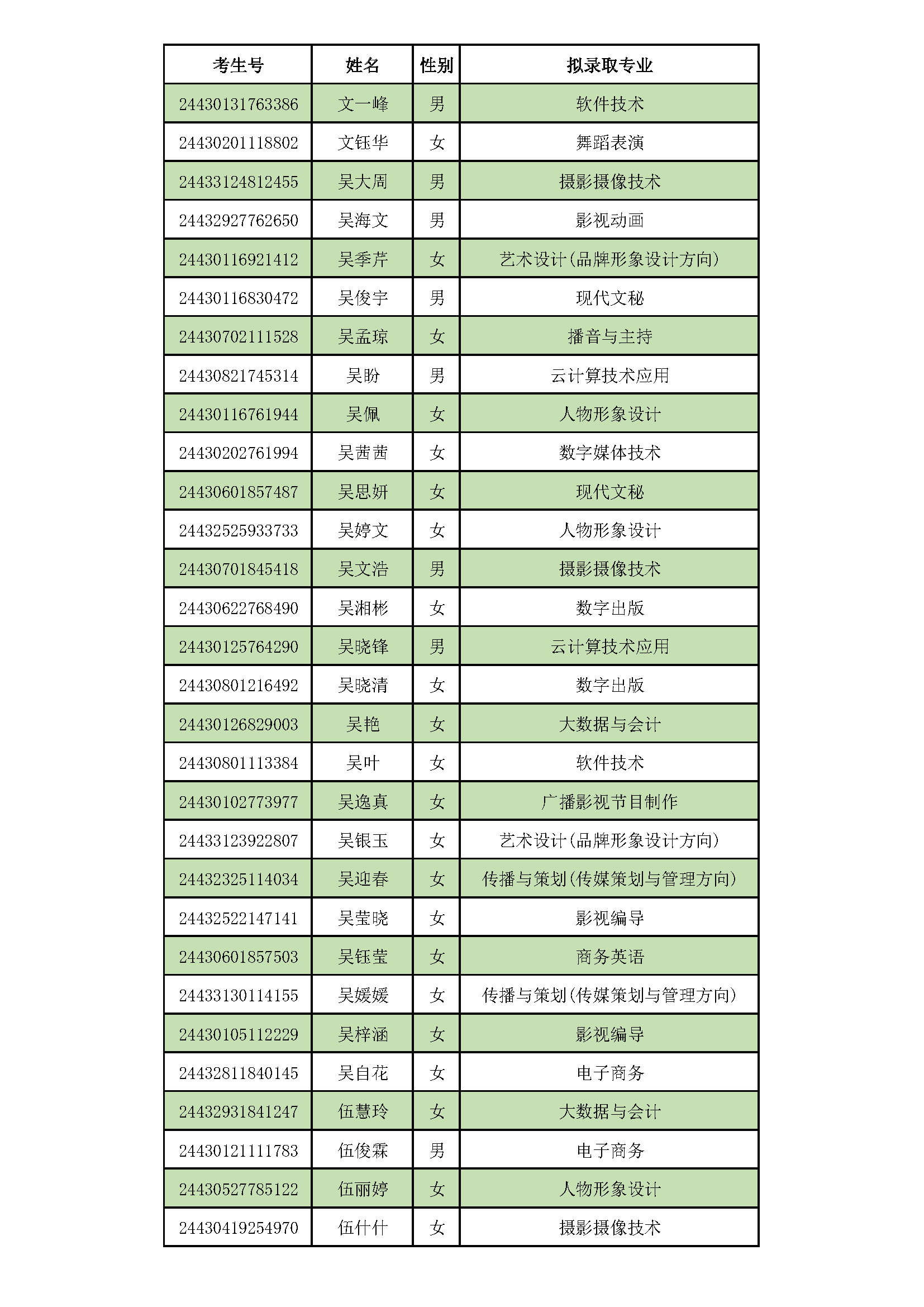 根据湖南省教育厅、湖南省教育考试院有关文件要求和《湖南大众传媒职业技术学院2024年单招章程》的相关规定,我校2024年单招第一志愿考试拟录取考生名单已按要求上报湖南省教育考试院,经审核通过,现予以公示。公示期:2024年3月26日-4月1日。