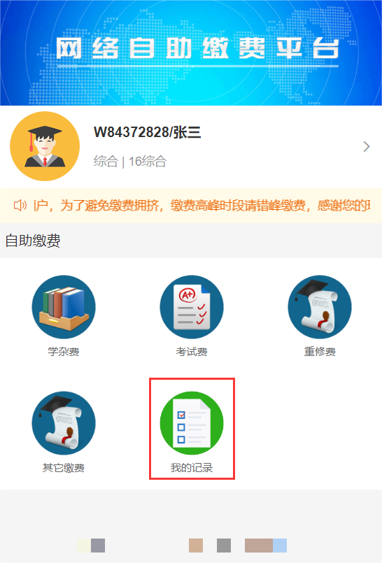 3、登录后点击学杂费即可缴纳学费、住宿费等;