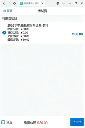 (一)缴费时间:2026年3月8日8:00—3月10日8:00